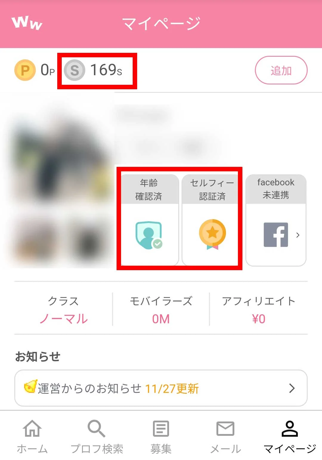 ワクメ登録と認証をすれば無料で1700円相当のポイント(170s)がもらえます。
